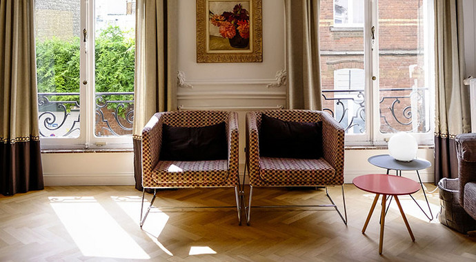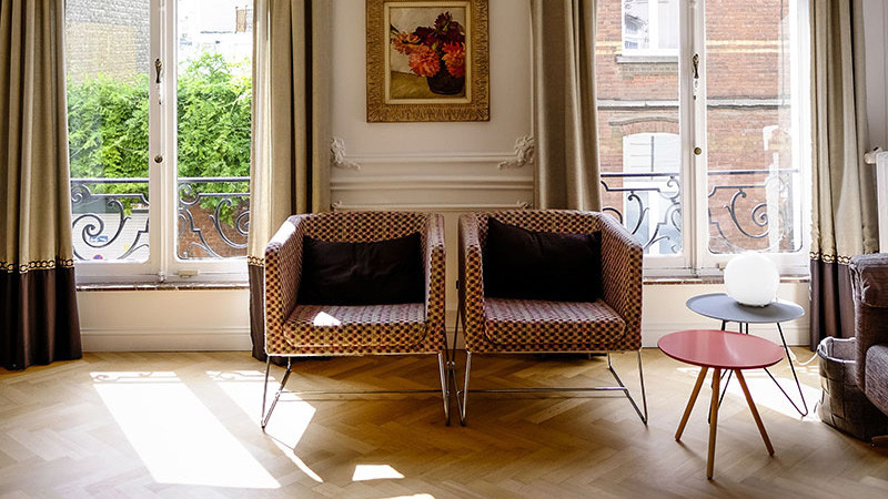 A modern kitchen as well as a large dining area and a spacious living area on the middle floor are the centrepiece for socialising. In the kitchen, the sofie chairs by rossin design allows a stylisch and enjoyable stay. rossin lounge furniture finds its place in the spacious living room, such as the riffel lounge chair and sinuè lounge chair.