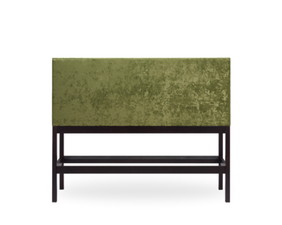 Frame in plywood; polyurethane foam covered with fibre wadding; feet in sold beech; fixed cover