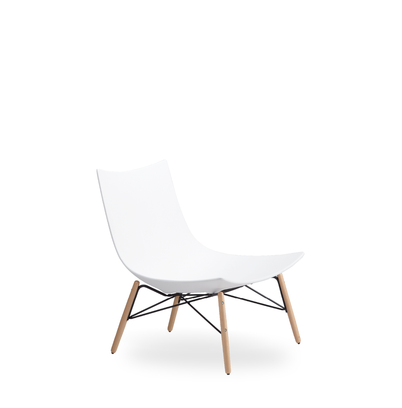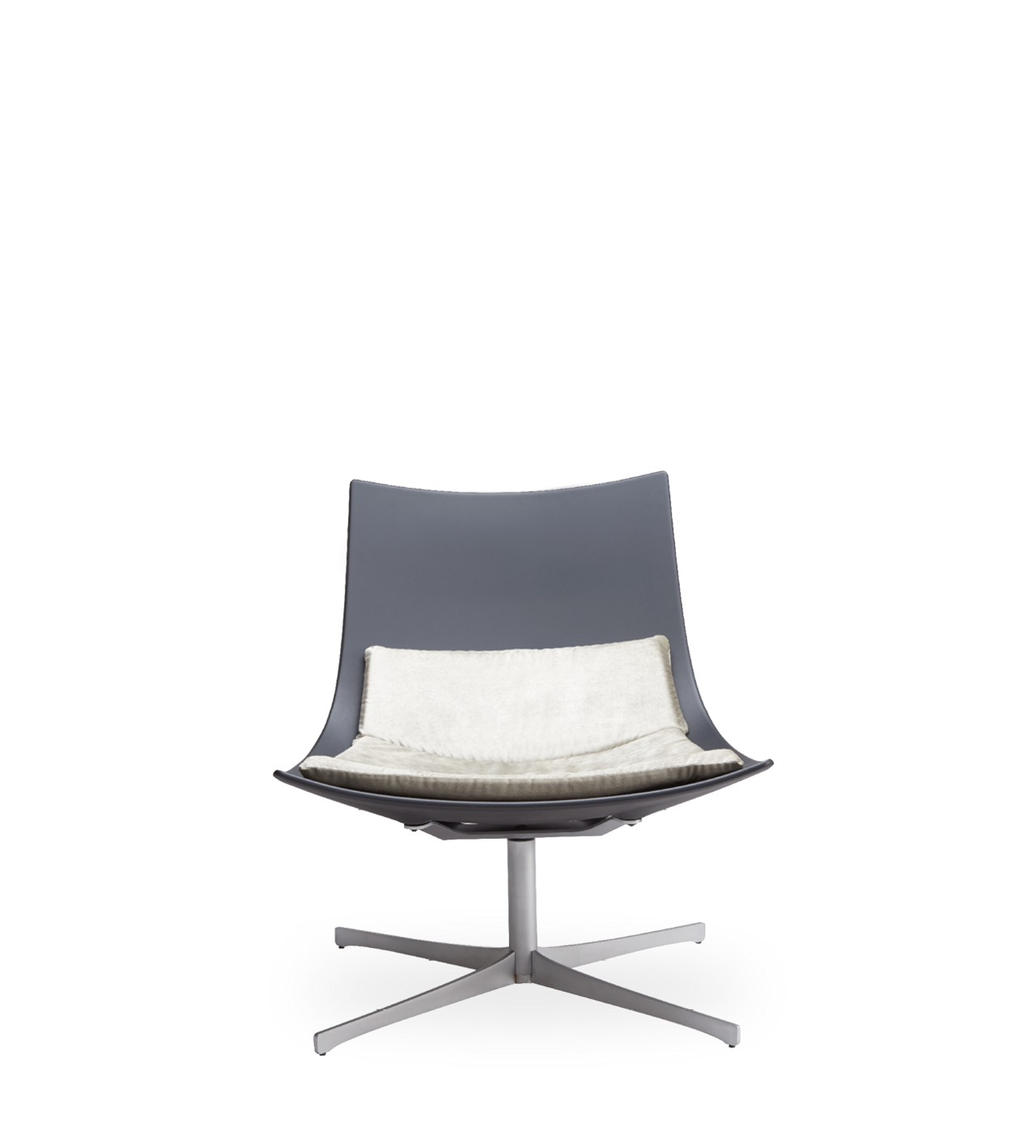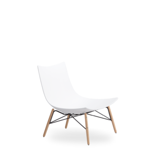 Lounge chair in BAYDUR 600 varnished or upholstered with flame retardant poliurethane foam and with fixed cover; 2 different bases: 4 wooden legs with metal support - rotating 4 star base; cushion for lounge chair in memory foam with removable cover.