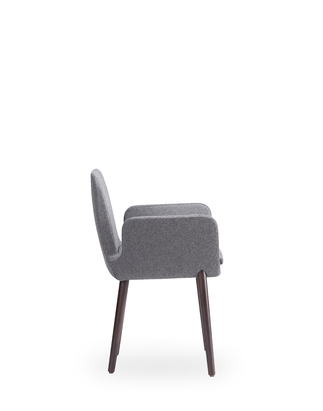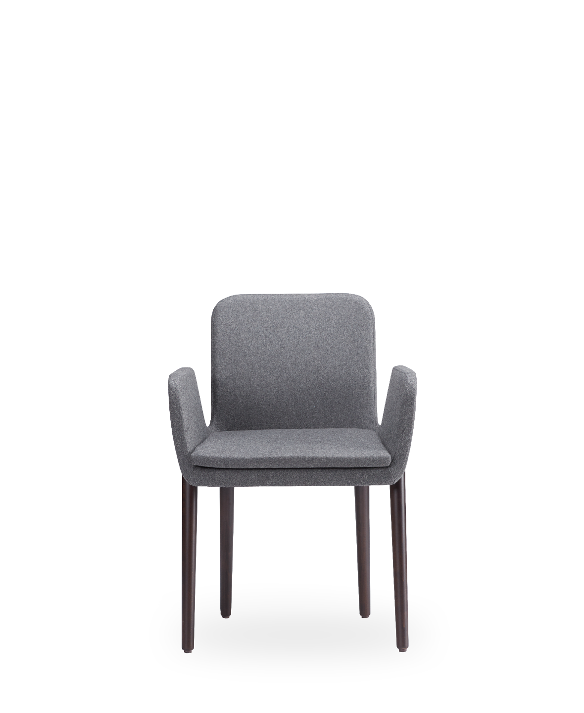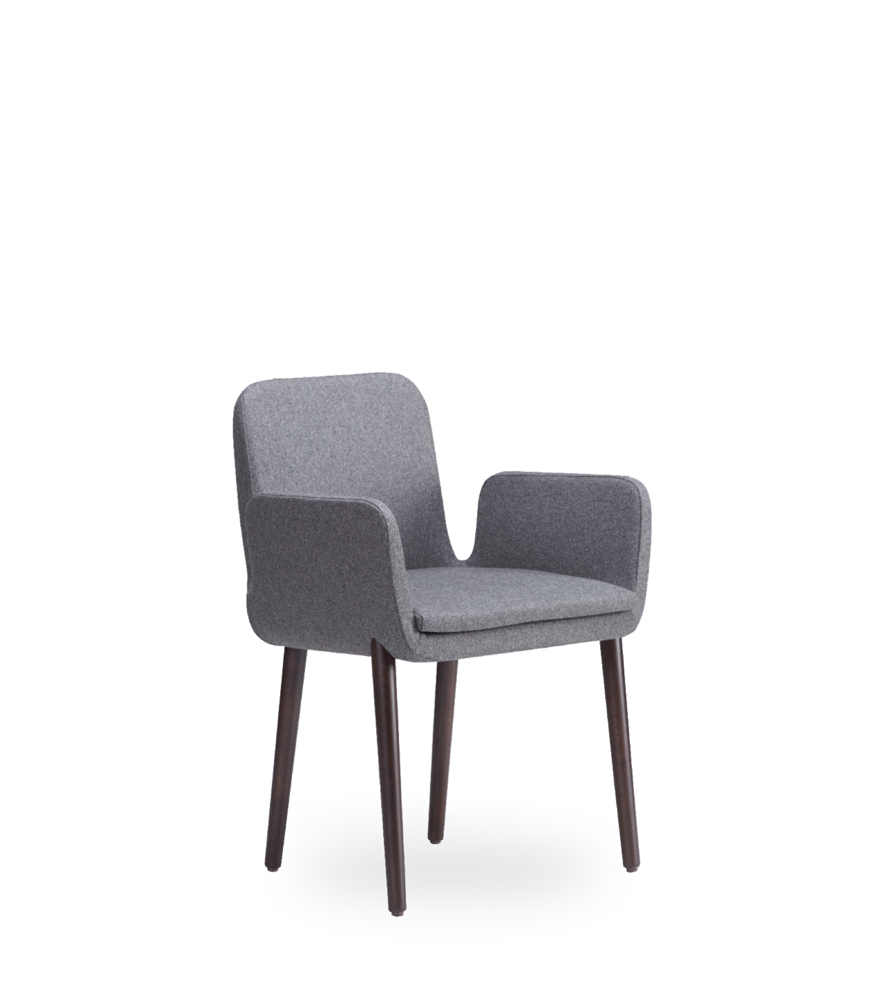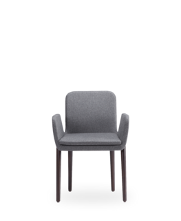 Metal frame and padding in cold-moulded fire retardant polyurethane foam; wooden legs in beech natural or wenge - sled metal base black - swivel 4 legs tube base black; fixed cover, seating-cushion in polyurethane foam with removable cover.