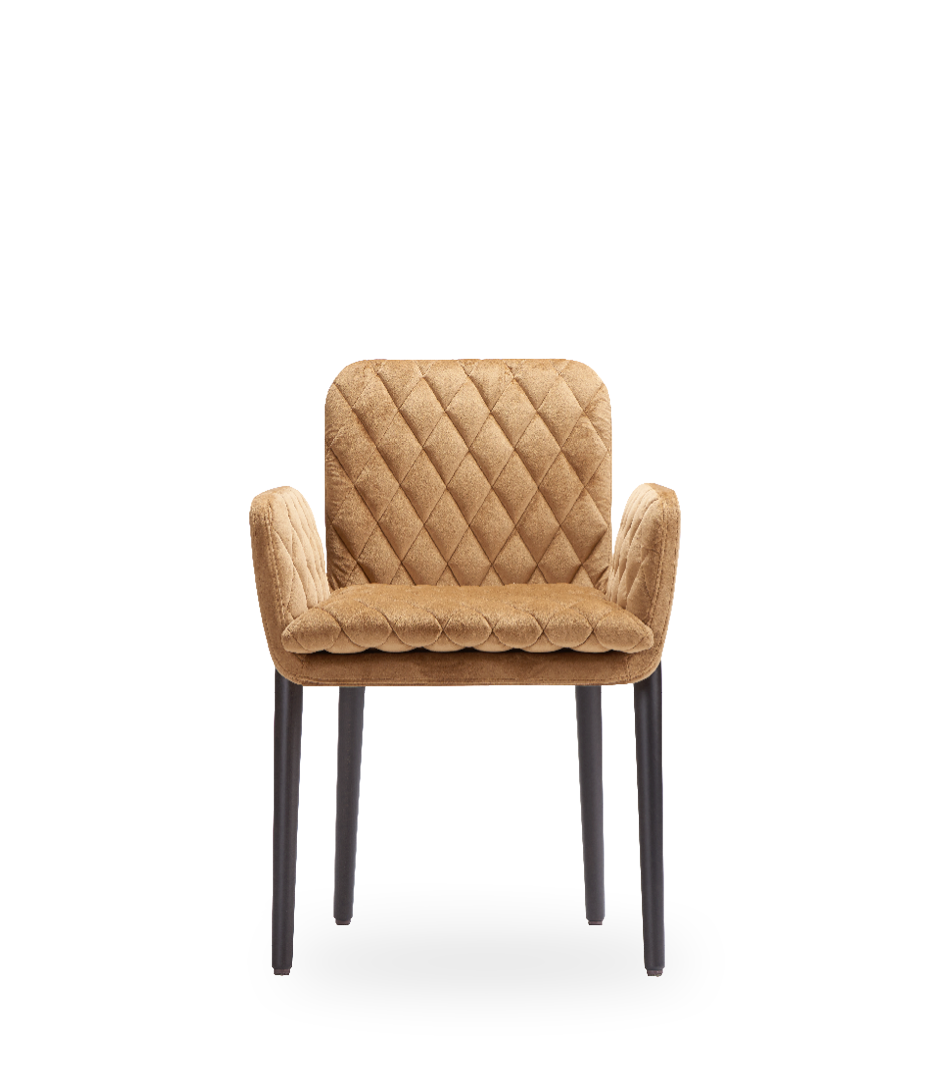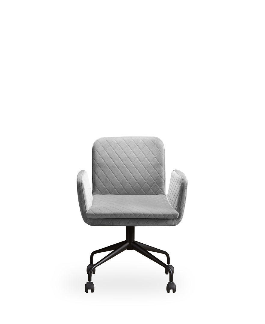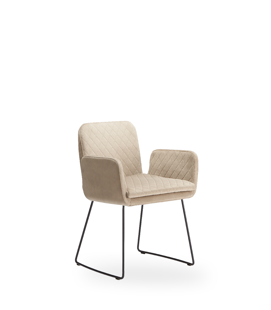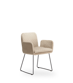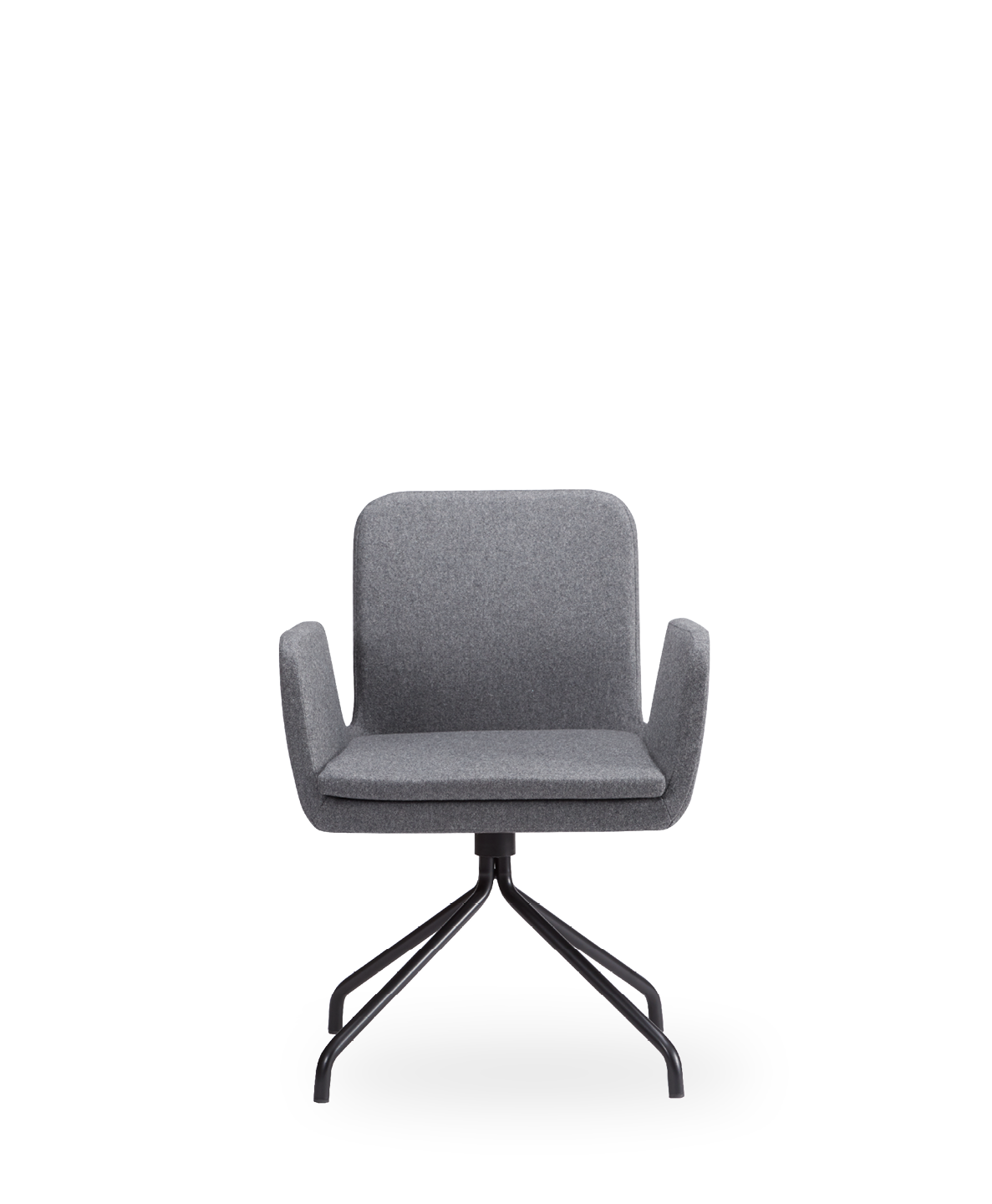 Metal frame and padding in cold-moulded fire retardant polyurethane foam; wooden legs in beech natural or wenge - sled metal base black - swivel 4 legs tube base black; fixed cover, seating-cushion in polyurethane foam with removable cover.