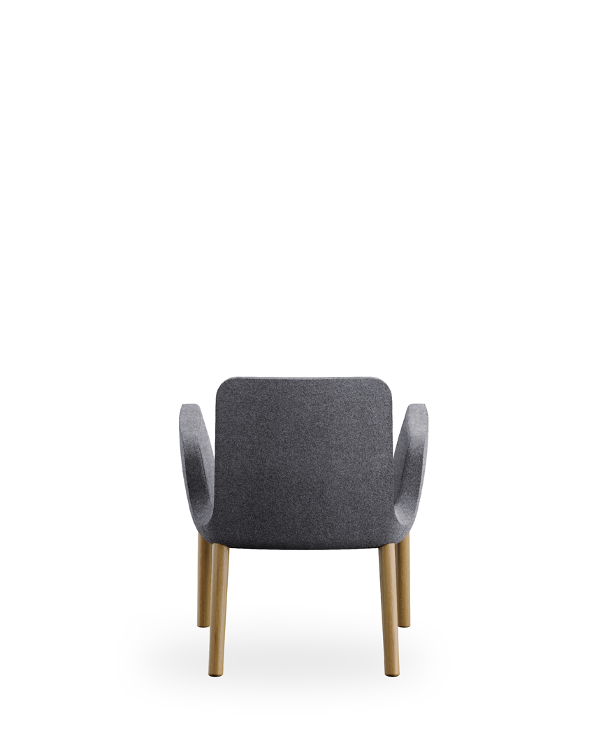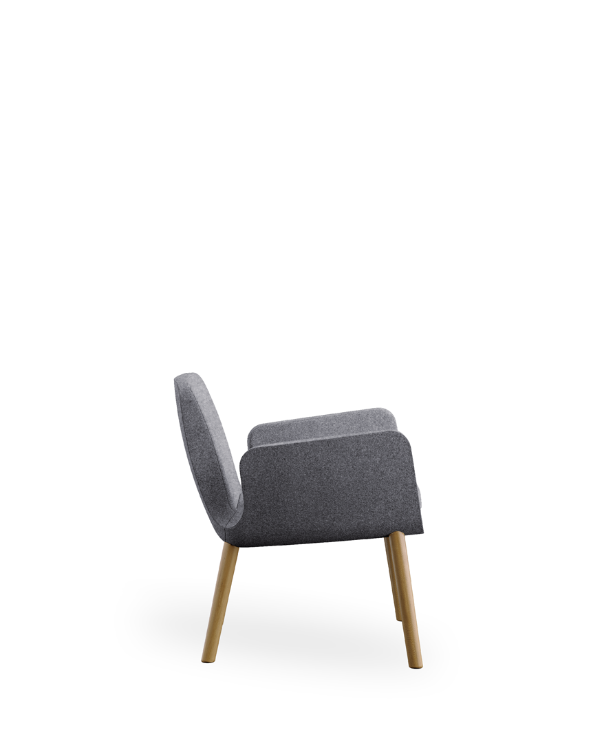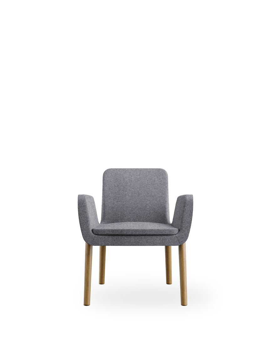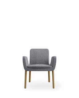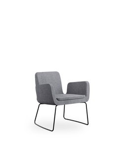 Metal frame and padding in cold-moulded fire retardant polyurethane foam; wooden legs in beech natural or wenge - sled metal base black - swivel base black; fixed cover, seating-cushion in polyurethane foam with removable cover on request