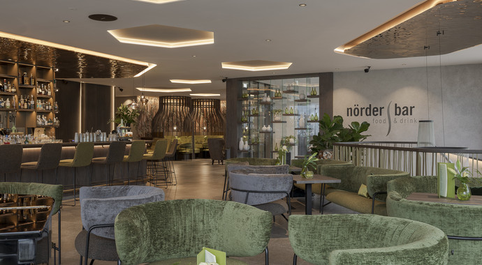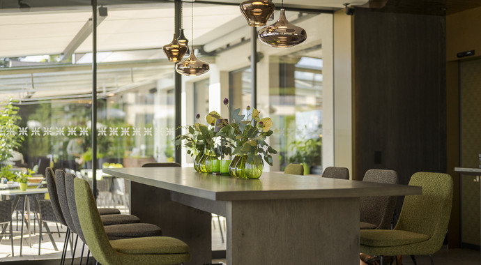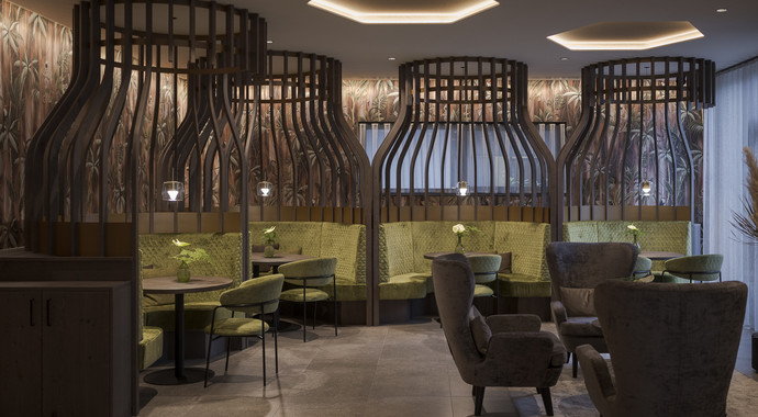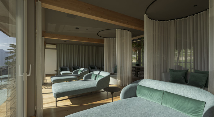 Delicate tonalità di verde - dal salvia e pistacchio al delicato verde muschio - accolgono gli ospiti del wellness resort a 5 stelle e percorrono l'intera struttura. L'atmosfera rilassata e invitante è il risultato di un'armoniosa combinazione tra natura e design moderno.