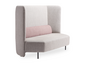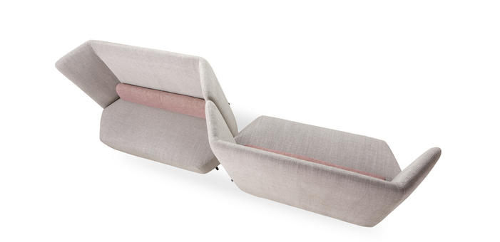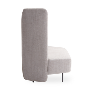 Fusto in massello e multistrato; poliuretano espanso ignifugo rivestito in fibra acrilica; rivestimento fisso; piedi in acciaio verniciato nero.