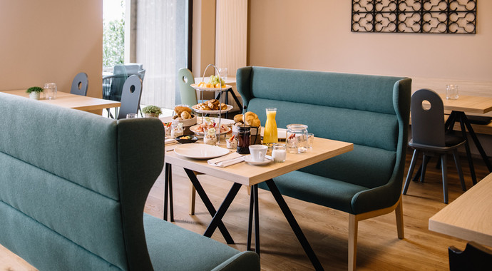 Rossin steht für Wohlfühlen. Die rossin-Produkte schaffen ein feel at home Gefühl und sind daher bei Hotels für ihren Lounge- und Lobbybereich die erste Wahl. Das 4-Sterne-S Hotel Schwarzenstein arbeitet schon seit einigen Jahren mit der Firma rossin zusammen. Die qualitativ hochwertigen rossin Möbel passen gut zum Ambiente und sorgen für eine angenehme Wohlfühlatmosphäre. Aus diesem Grund hat sich die Familie Zimmerhofer beim Umbau in 2022 wieder für rossin entschieden. Die Kollektion elba fügt sich perfekt in das edle und entspannte Ambiente des großzügigen Loungebereiches ein. Das neueste Modell aus der Kollektion sofie - der Barhocker mit Armlehne - lädt zum entspannten Verweilen an der Bar ein. Der sofie Armlehnstuhl findet sich im gemütlichen „Stüberl“ (ein gemütlicher Raum eingerichtet im alpinen Stil gemäß der lokalen Tradition nennt sich Stüberl) wieder. Die aris Kollektion rundet das Interior-Konzept perfekt ab.