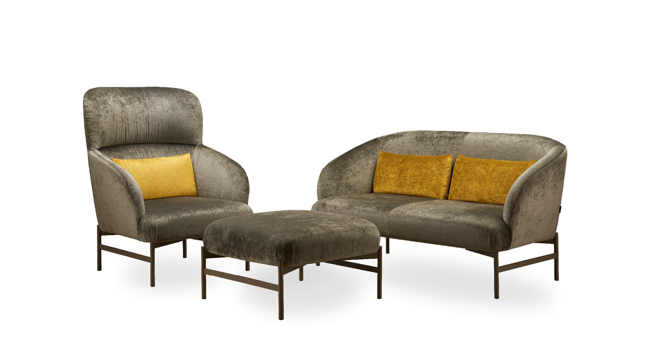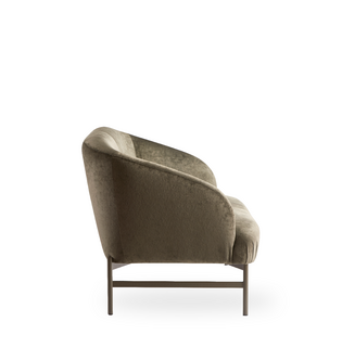 Gestell aus Massiv- und Schichtholz; flammhemmender Polyurethan-Schaumstoff überzogen mit Wattevlies; fixer Bezug, Nierenkissen abziehbar; Füße in Metall lackiert anthrazit.