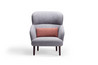 Gestell aus Massiv- und Schichtholz; flammhemmender Polyurethan-Schaumstoff überzogen mit Wattevlies; fixer Bezug, Nierenkissen abziehbar; Füße in Eiche natur oder gebeizt.