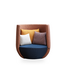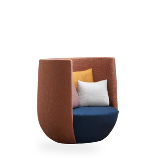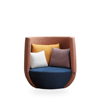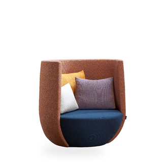 Gestell aus Massiv- und Schichtholz; feuerhemmender Polyurethan-Schaumstoff überzogen mit Wattevlies; Gestell mit fixem Bezug; Sitz und Rücken mit fixem Bezug; 3 lose Rückenkissen (1 x 60 x 45 cm, 1 x 50 x 38 cm, 1 x 40 x 30 cm); Bodenplatte drehbar;