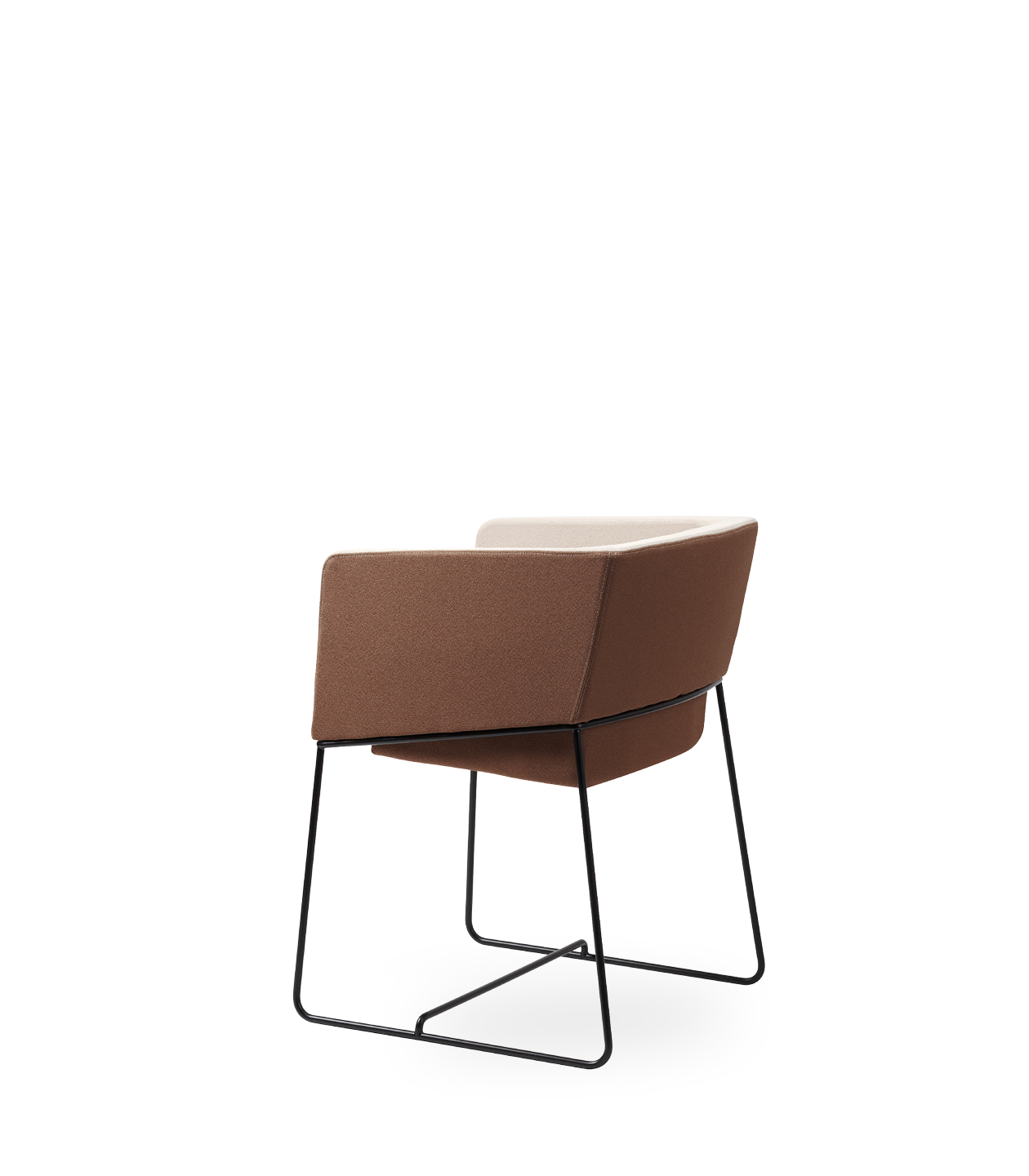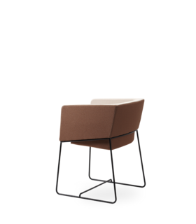 Gestell in Schichtholz überzogen mit feuerhemmendem Polyurethanschaum und Wattevlies; fixer Bezug, nur Sitzkissen abziehbar; Untergestell Metallkufe Ø 12 mm.